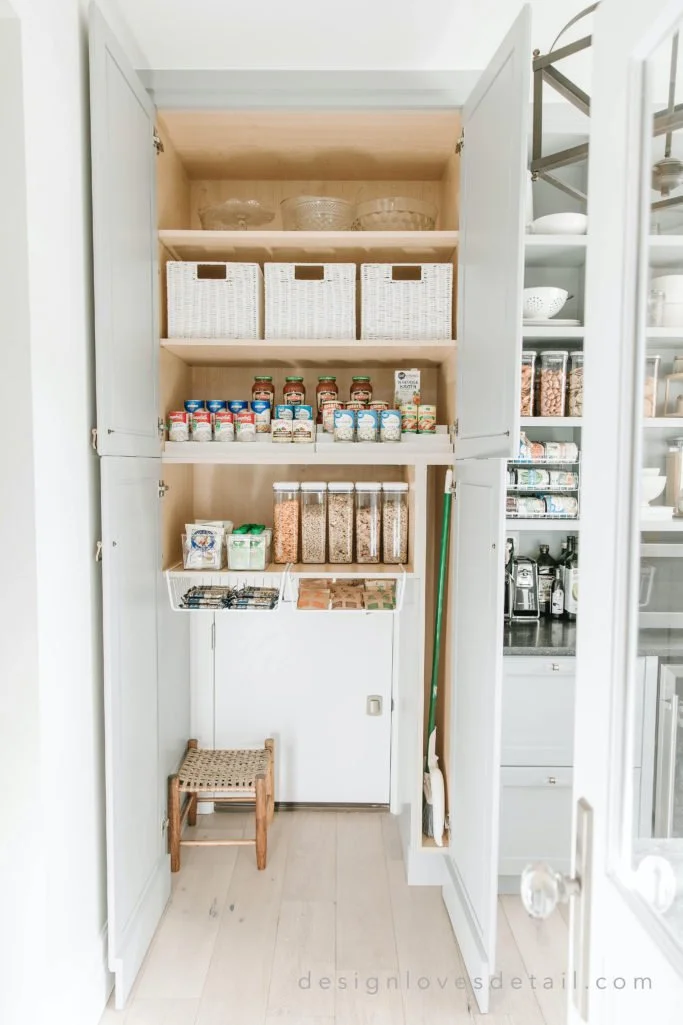 It's been awesome to have this extra space and to have a kids "snack station" right at their eye level! Makes for a lot less kids messes when they're on the prowl for food! haha. And also calls coming from the pantry of "mom, there's no food to eat!!". Which I'd say is a big win for everyone! Oh and I also squeezed in a little place for our broom in this space as well-- love that it can be hidden away in it's own spot!