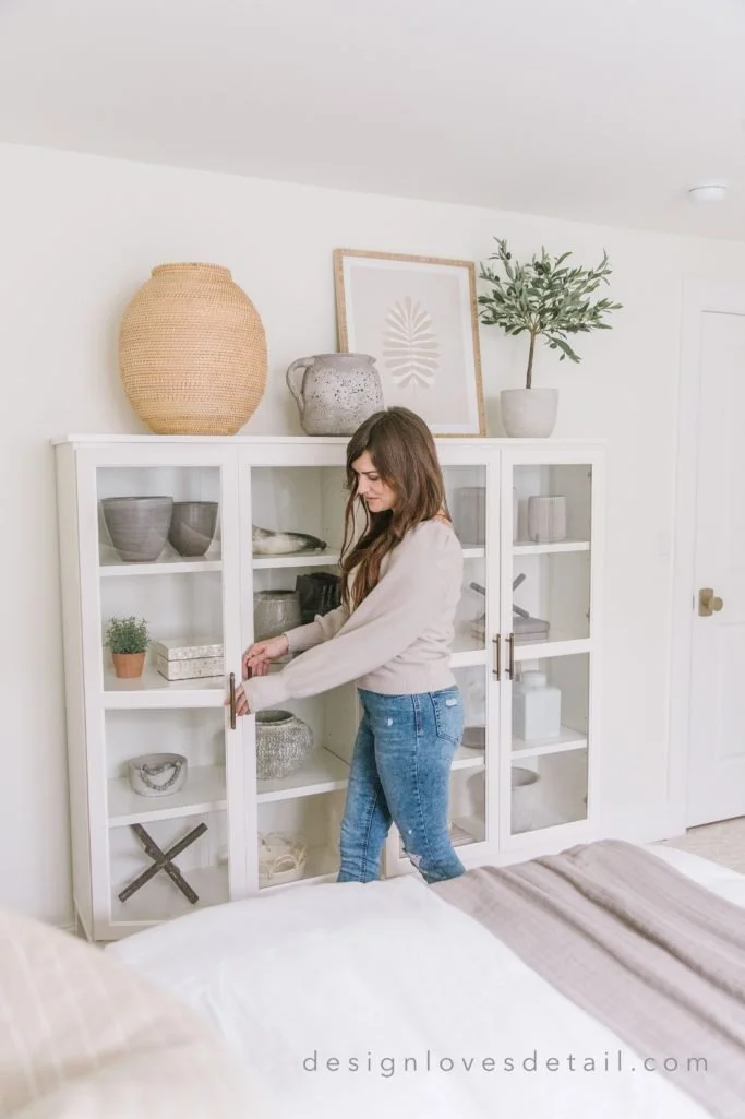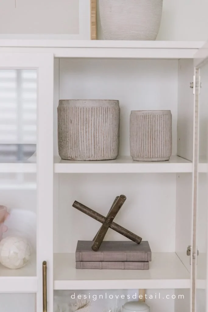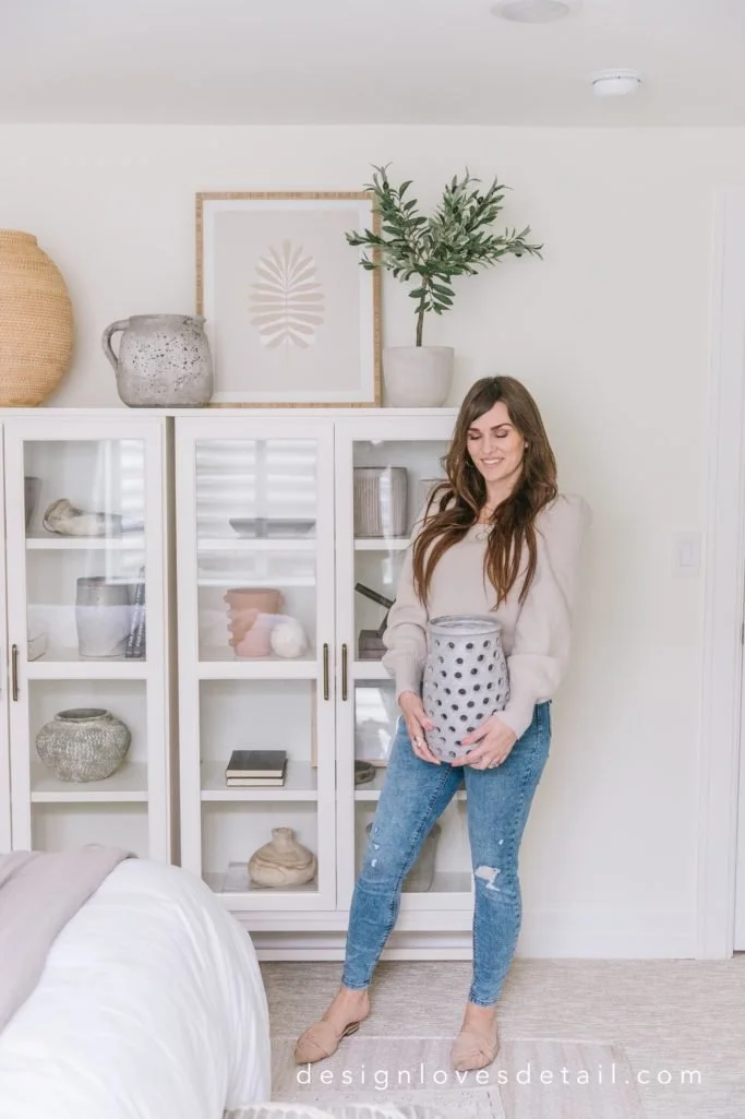 These glass door bookshelves are some of my favorite furniture pieces to style! I ordered these gorgeous cabinets online from The Home Depot and today I am partnering up with The Home Depot to share a round up of decor essentials that are perfect for accenting your cabinets, shelves & tables. Right now is the perfect time to shop with their President's Day Sale!