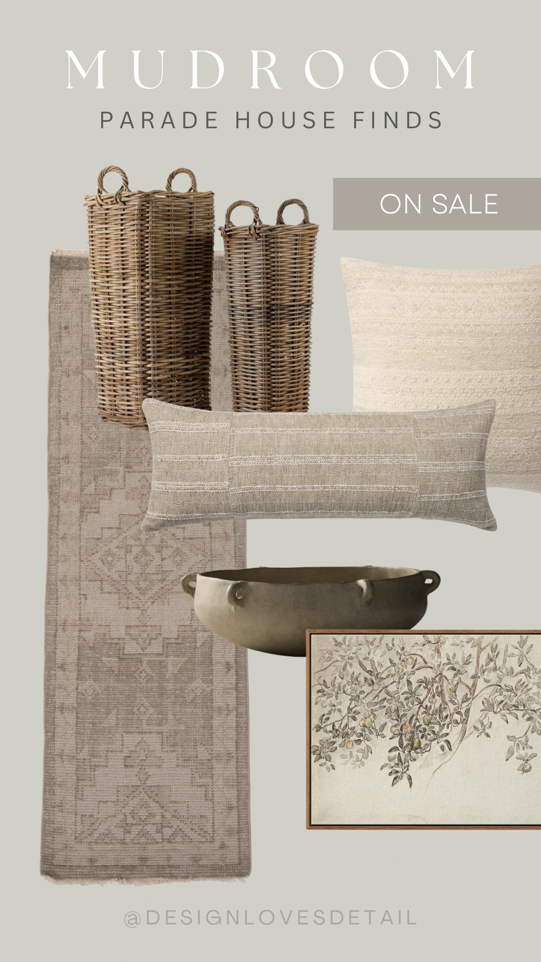 I also found that antique bench from a local store, but tracked down some similar ones on Etsy that I’ll link for you! Ohhh and how fun are those tall square umbrella baskets?? Found them on Wayfair! They’re so cute for layering in a corner + functional too.