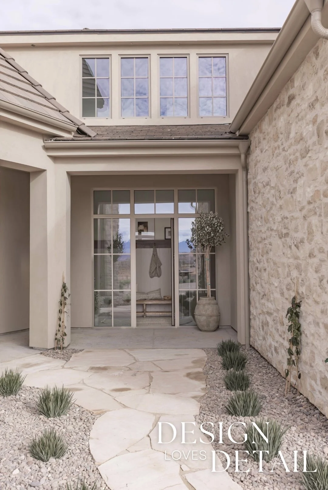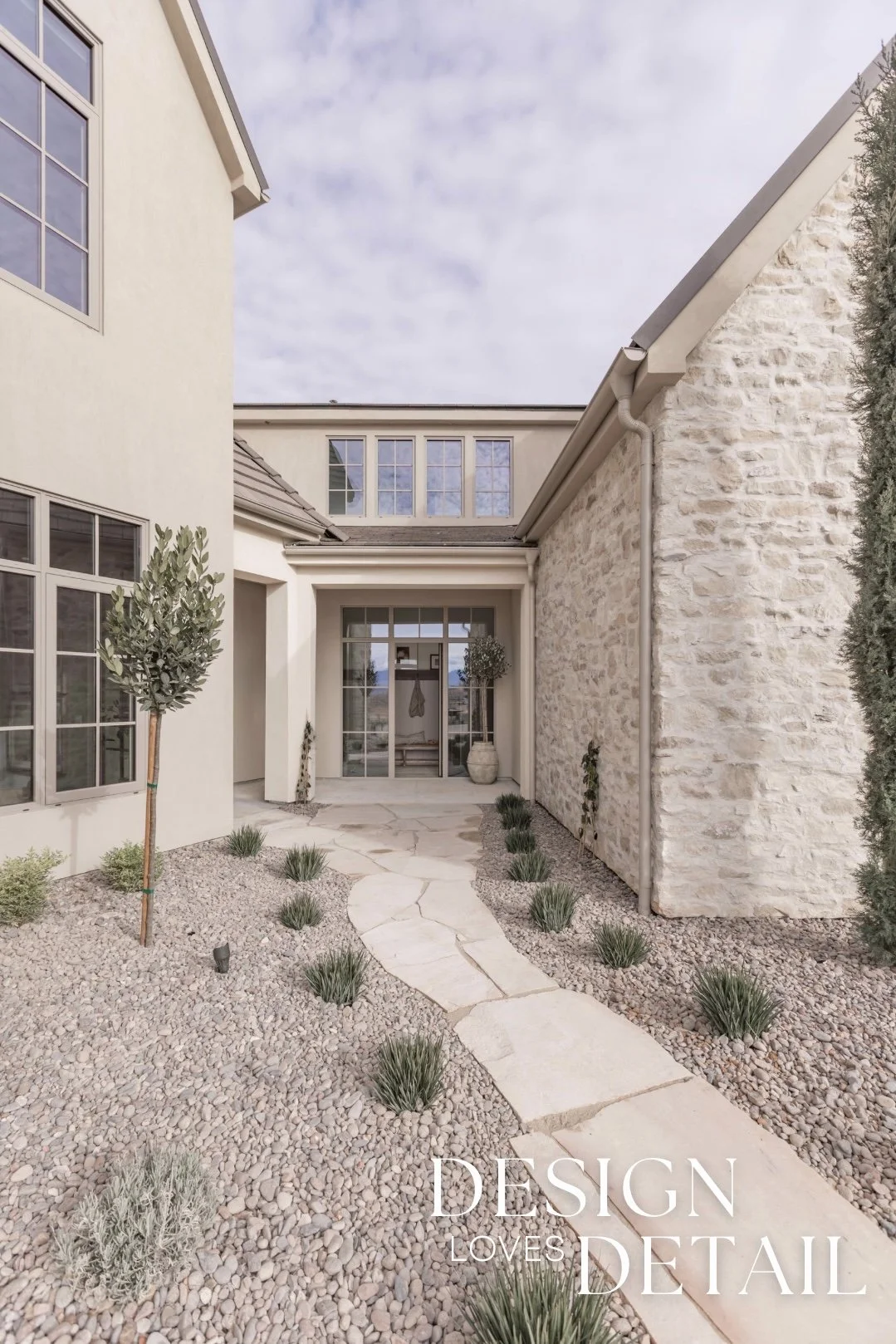 Laying flagstone to this entrance was the perfect way to distinguish it from the front door (even though the massive scale of the front door also helps with this :), additionally, I just love the character added by a meandering flagstone path. It feels so welcoming & inviting!