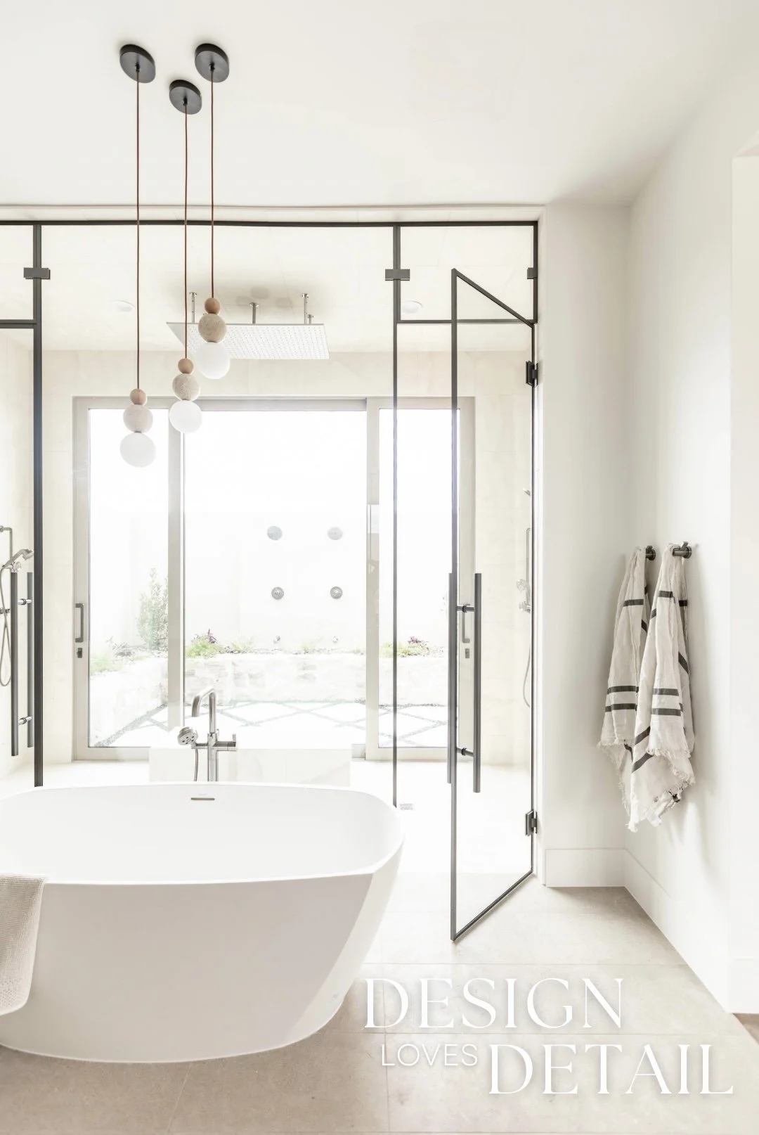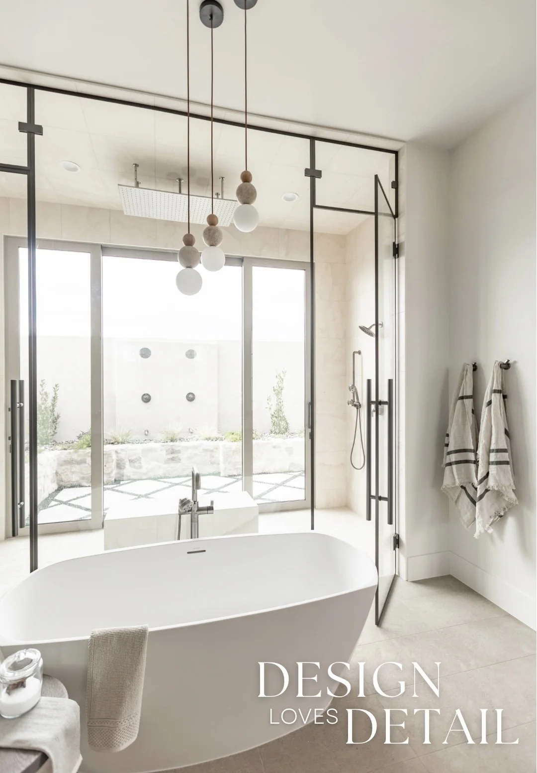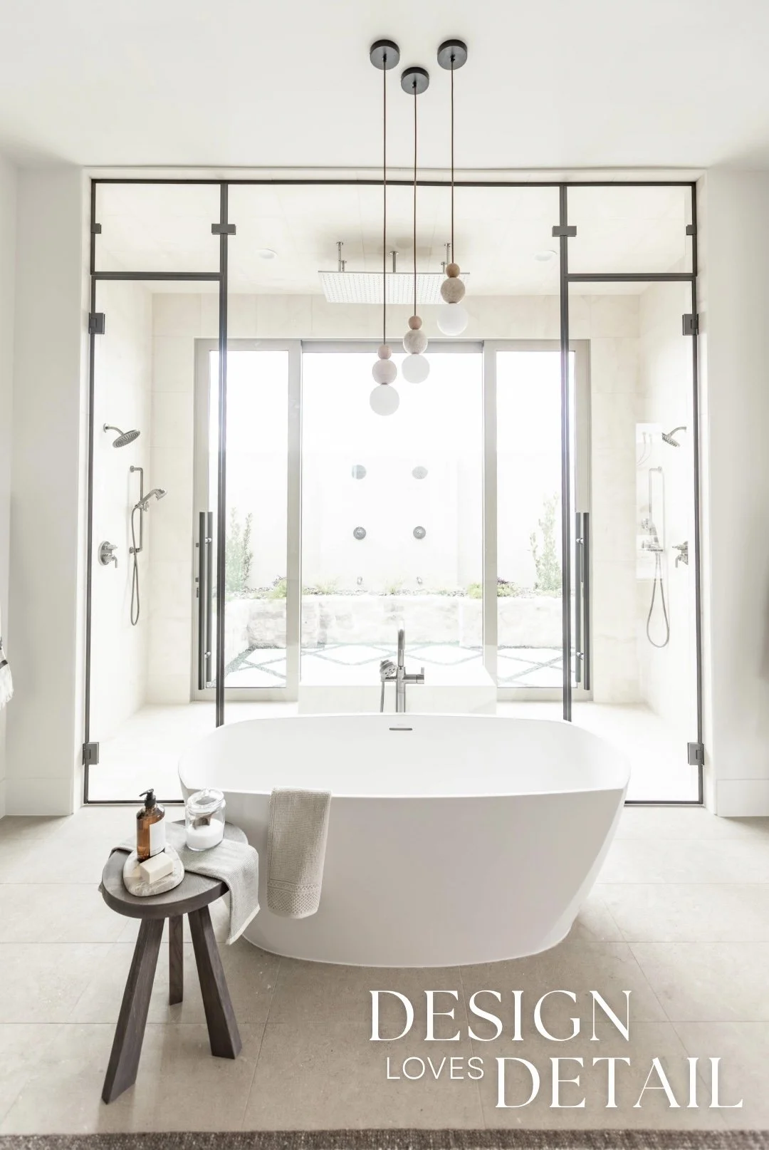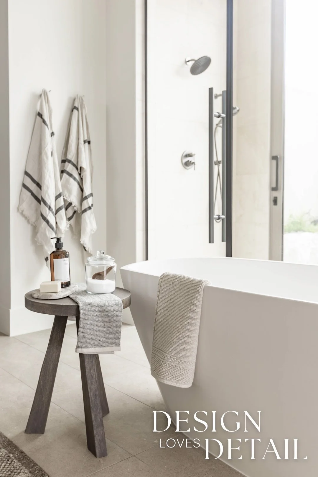 More well planned touches of luxury in this space include the heated stone floors, oversized bathtub, floating walnut vanities and stunning built-in linen cabinet. I can’t wait to show you more of this incredible project, both here & over on our YouTube channel too!